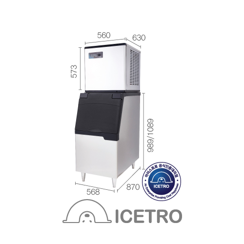 최대생산능력(Kg/day) : 공냉식220 // 수냉식 210(수냉식의 경우 냉각수 유량 조절을 통해 최대 생산량을 조절할 수 있습니다)